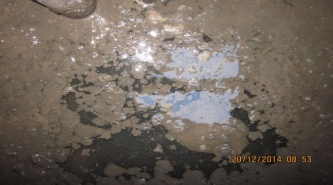 Bọt màu trắng, nổi. Bọt to có bùn trên bề mặt, bùn màu nâu