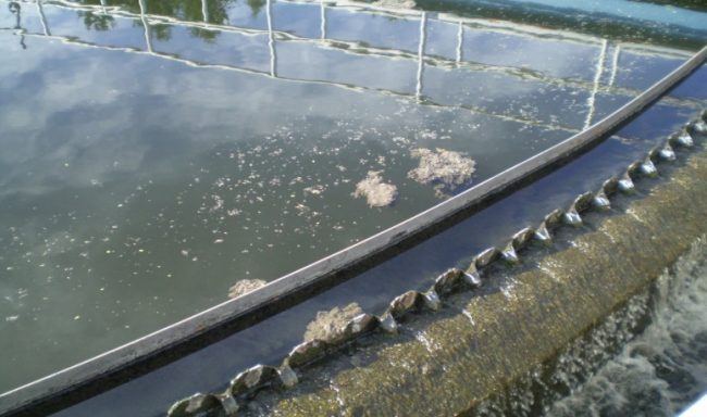 Khi bạn để bùn trong bể quá lâu sẽ có hiện tượng khử nitrat hóa. Khi đó, khí nito sẽ tích tự trong bùn và đẩy bùn lên trên.